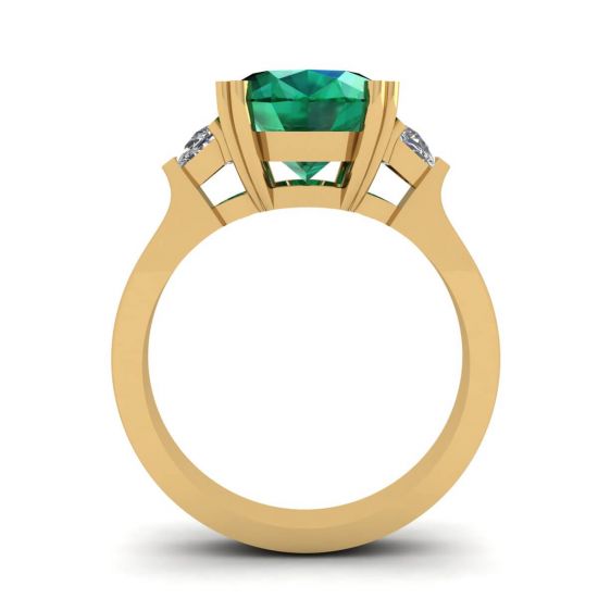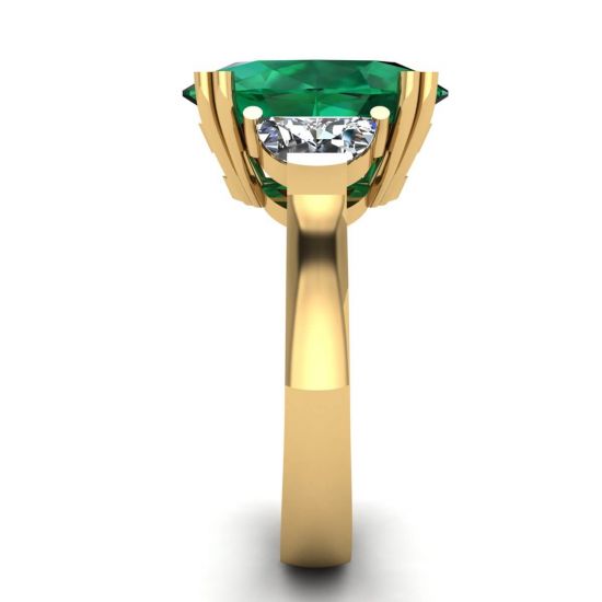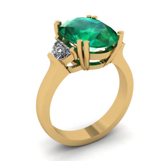 Oval Emerald with Half-Moon Side Diamonds Ring Yellow Gold